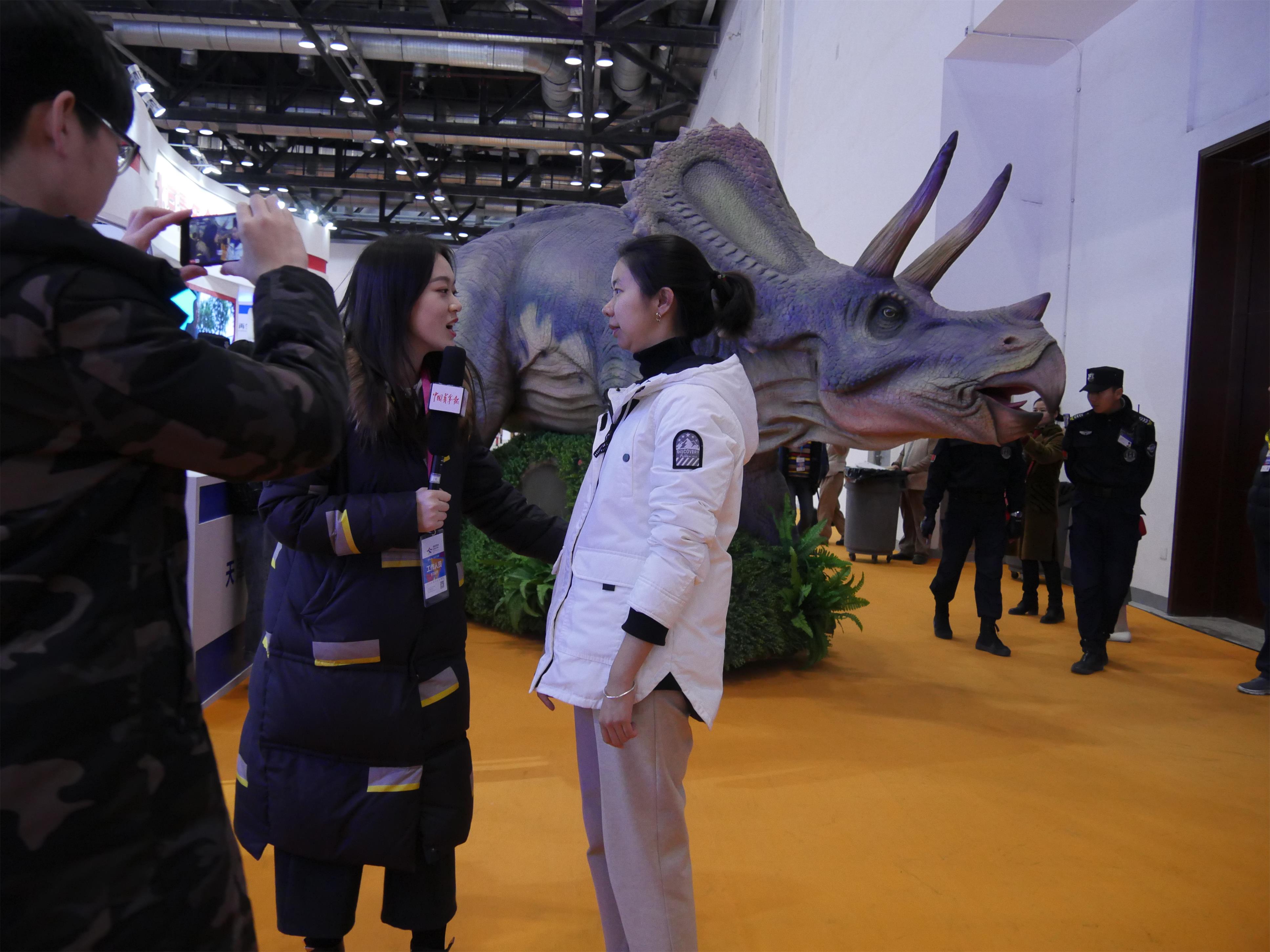 汇龙堂行走仿真恐龙接受中青网在线直播
