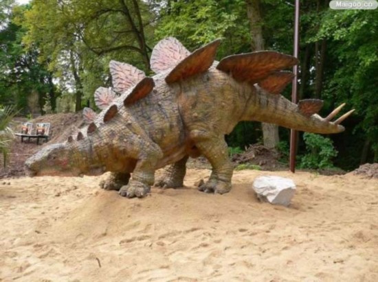 由于它奇特的尾刺和骨板,剑龙是最好认的恐龙之一。它们生活在一亿五千万到一亿四千五百万年以前,一个由巨型生物统治的时代。剑龙的体格庞大,是一种食草动物。它的姿势非常独特,巨大浑圆的背部,前肢很短,头部离地面很近而僵硬的尾巴却高高的翘在空中。它的两排骨板和骨刺常常是猜测的话题。这些刺最有可能用于自保,而这些骨板也被认为是自保的一种武器,同时也有炫耀以及用来保持体温(降温)的功能。剑龙在坚龙属中体型最大,但是也只有公共汽车那么大,大约30英尺长,14英尺高。这种四足恐龙是最好辨认的恐龙之一,因为它浑圆的背部竖立着两排像风筝一样的骨板,尾巴顶端有长着两对横向排列的长刺。尽管体型巨大,它在它的同辈蜥脚类动物面前显得很矮小。