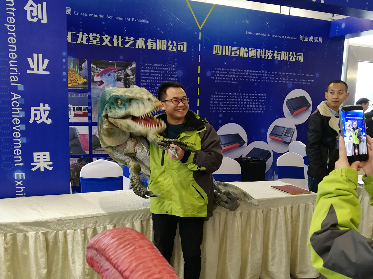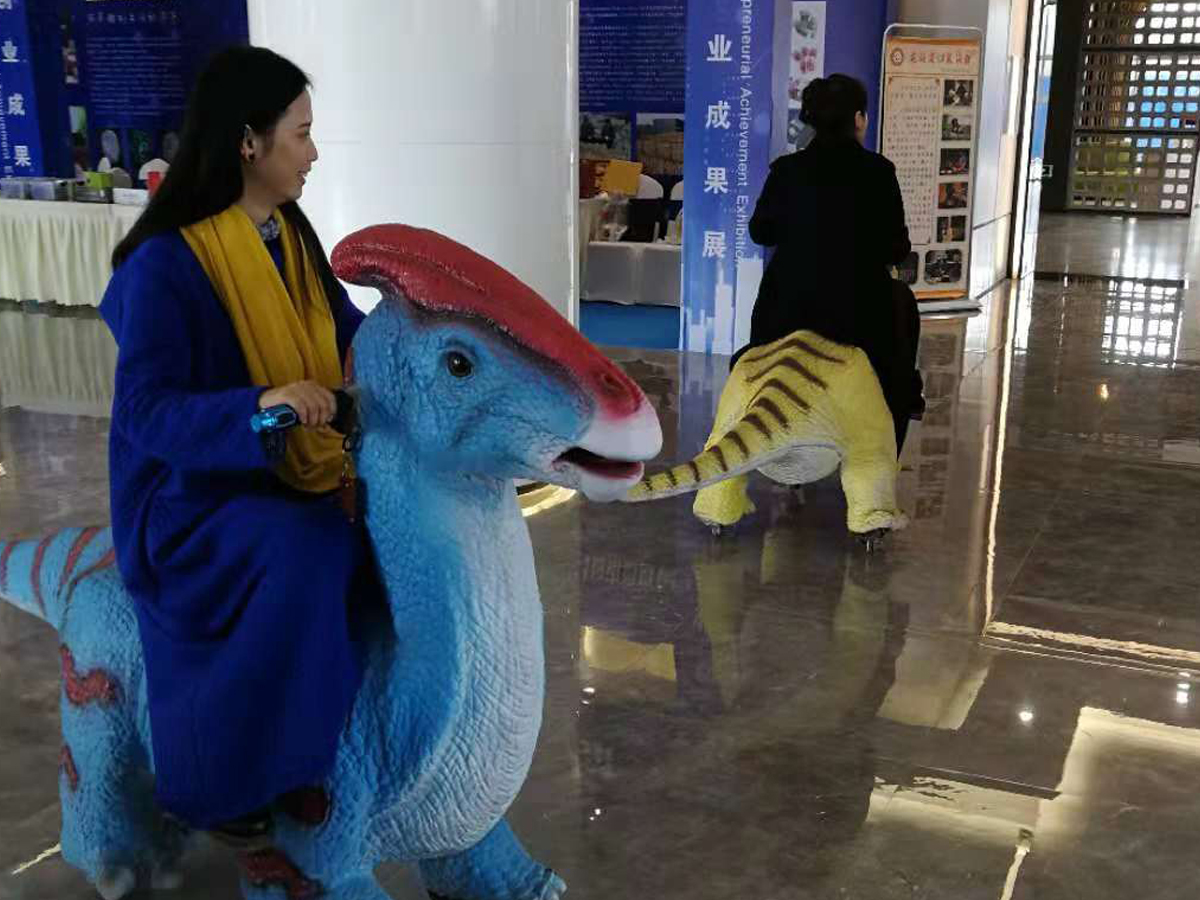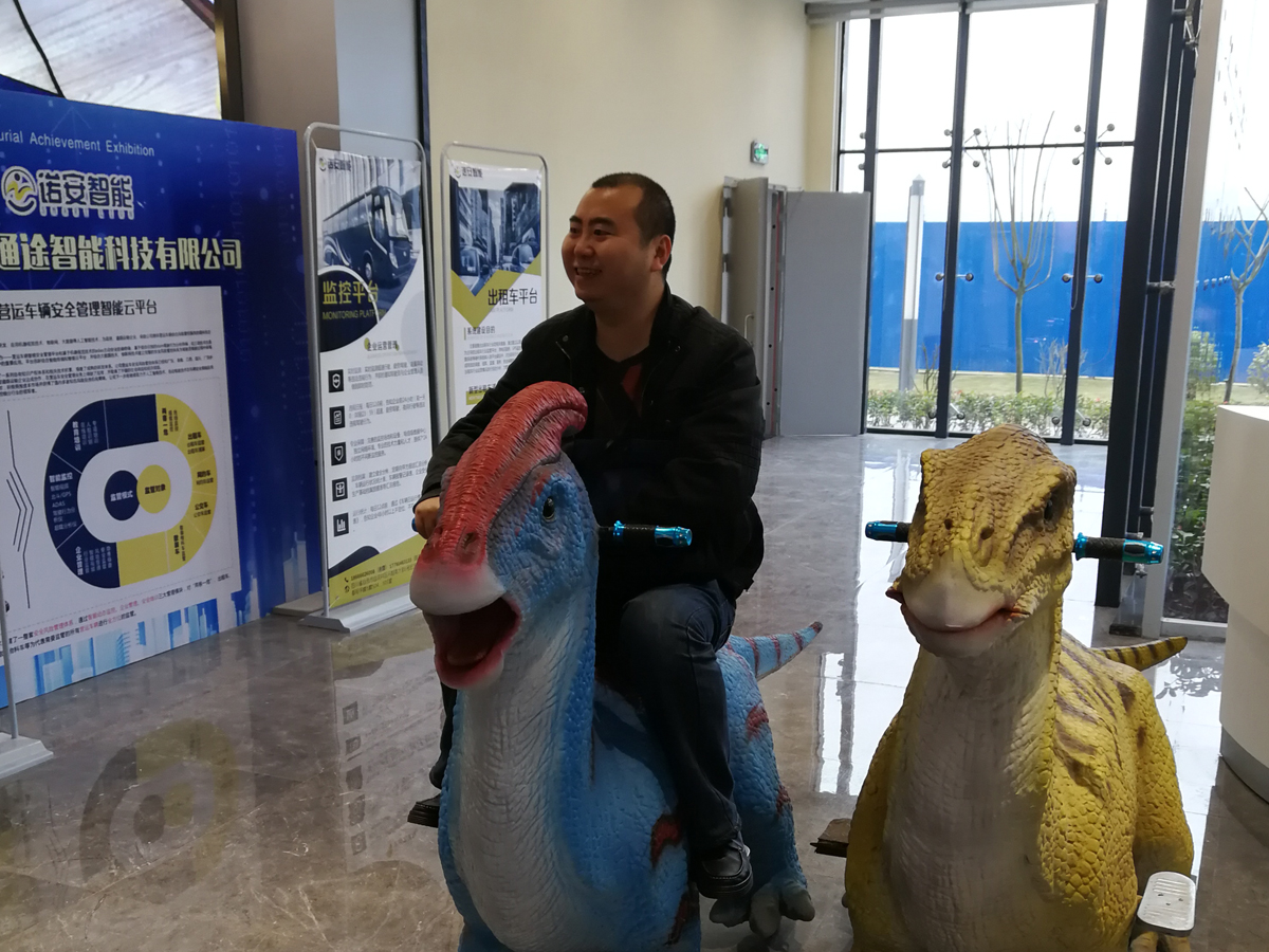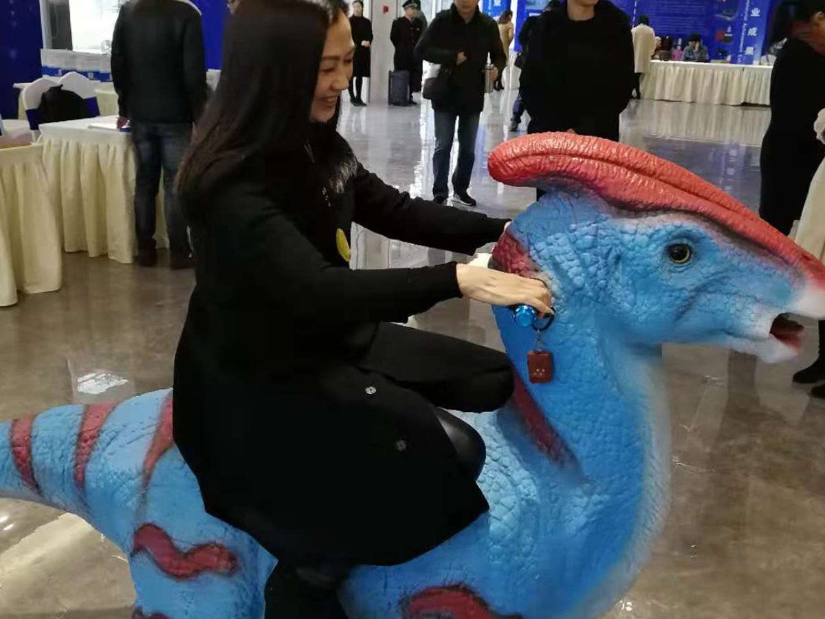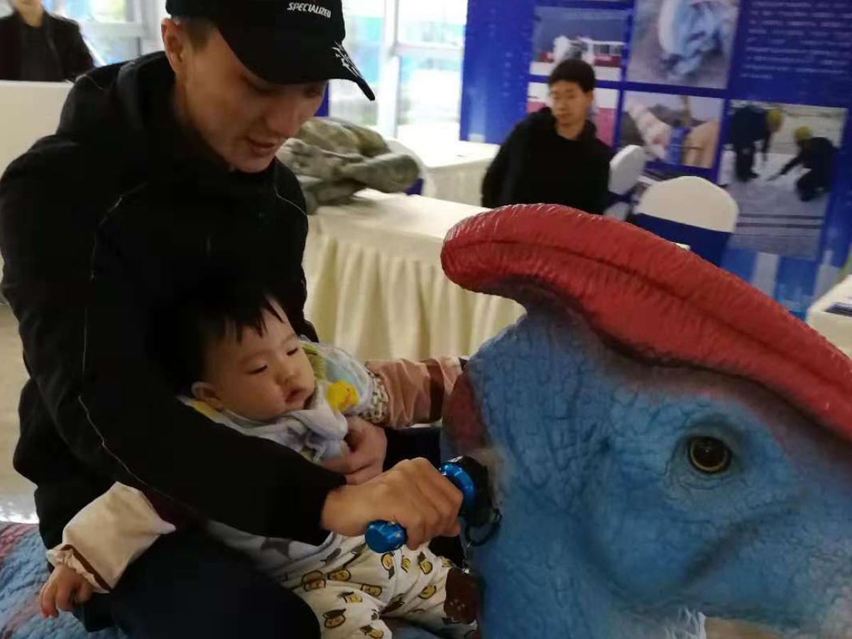 其中汇龙堂展出的仿真恐龙跑跑车和仿真恐龙皮套受各个年龄段朋友的喜爱。