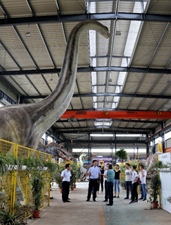 公司董事长杨世平陪同调研组一行到汇龙堂仿真恐龙园实地查看项目建设情况,详细汇报仿真恐龙园项目作为国家文化出口基地重点项目在产业发展中起到的作用以及未来的发展定位。