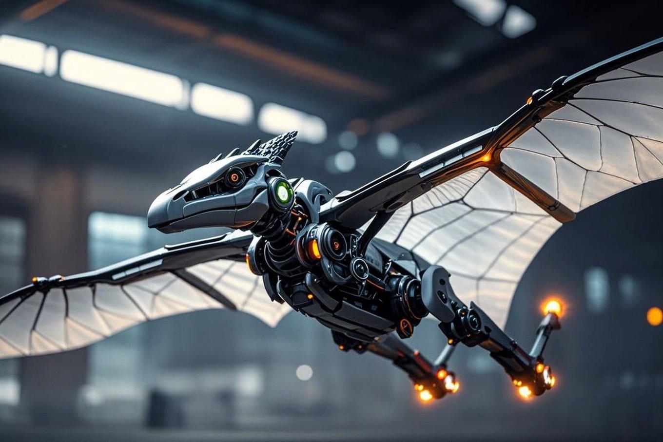 汇龙堂深谙,真正的科技巅峰从不是冰冷的参数堆砌,而是对生命美学的极致复刻。这款无人机以古生物翼龙为灵感原型,将1:1仿生关节结构与流线型机身结合: