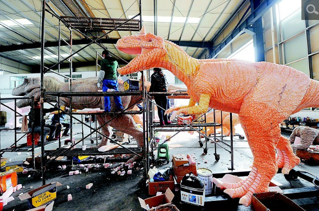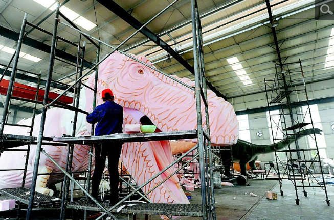 “随着知名度提升,国外订单增加很快,2016年整个产业的产值接近2亿元。”仿真恐龙基本按照真实恐龙大小等比例制作。工序是先制作钢骨架,然后包海绵模拟肌肉,接下来塑形,最后上色。