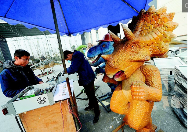 今年,当地十家制作企业正发起成立行业协会,谋划制定行业标准,推动技术创新,促进行业更好地发展。“我们正在研发制作手机APP,实现对仿真恐龙进行操控,希望结合互联网技术进入产业发展的新阶段。”一公司负责人表示。负责设计恐龙的设计师大多是年轻人。
