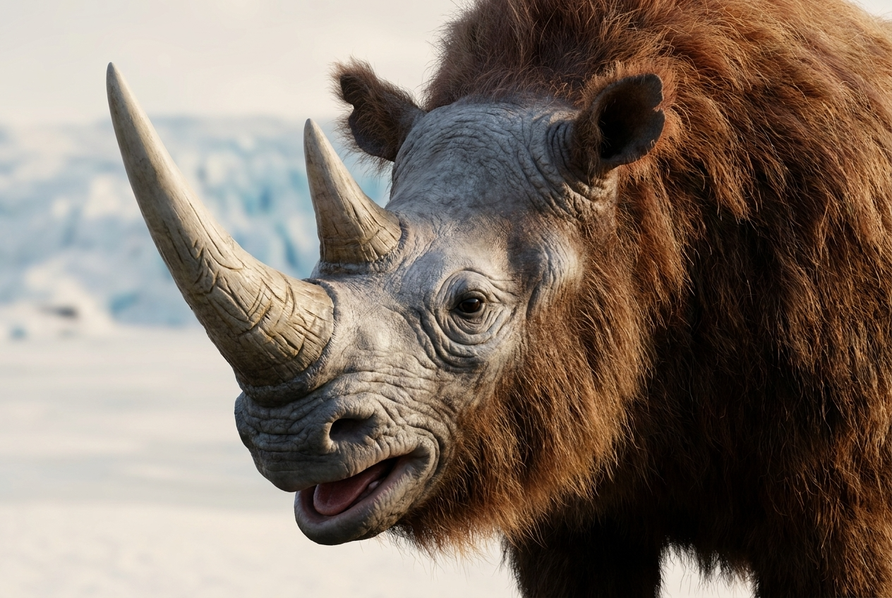 530万年前至1.17万年前,披毛犀(Coelodonta antiquitatis)曾是欧亚大陆北部冰河草原的霸主。这种身披厚密长毛、头生双角的巨型犀牛,与猛犸象、洞熊并称为"冰河时代三巨头"。